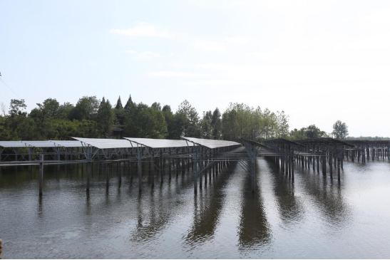 桃源湘成光伏电站由桃源县湘成光伏电力有限公司投资建设,电站位于湖南省桃源县,装机容量40MW,占地面积为1300亩,为公司首个渔光互补光伏电站。电站于2017 年开工建设,同年6月建成并网投运,该电站是公司首个采用双玻组件的电站,为后续再水面或潮湿环境的组件技术选择奠定了技术基础。