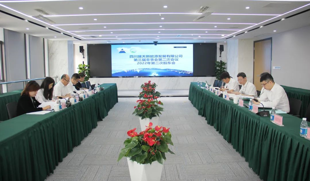 各股东代表及外部董事对晟天新能源2021年度经营业绩予以肯定,提出在国家“碳达峰、碳中和”、四川创建国家清洁能源示范省的战略部署下,期望晟天新能源立足高质量发展大局,瞄准“十四五”发展规划,抢抓战略发展机遇,积极应对市场挑战,夯实发展基础,优化经营管理,全力以赴实现十四五战略目标和2022年度经营目标。股东方也表示,将发挥资源、资金、技术、市场等优势,继续支持晟天新能源做强做优做大,助力晟天新能源打造成为一流绿色清洁能源服务商。