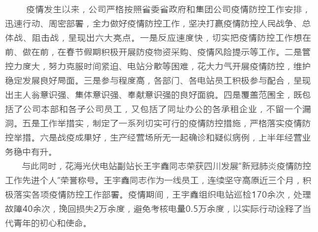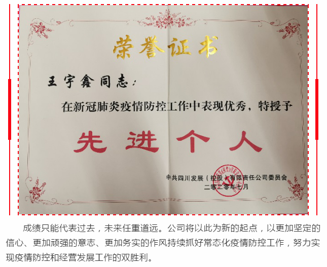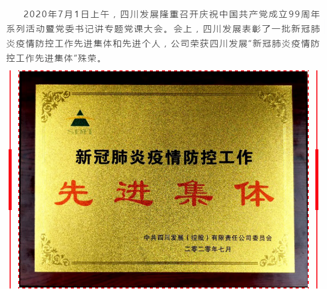 公司荣获四川发展“新冠肺炎疫情防控工作先进集体”荣誉称号