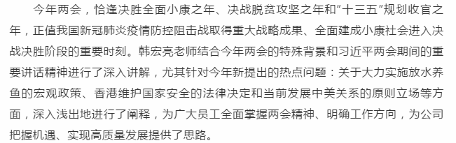 公司召开2020年全国两会精神培训会