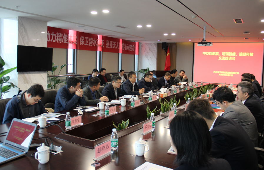 10月25日,中交第四航务工程勘察设计院有限公司投资处处长刘杰晓、安徽明瑞智能科技股份有限公司董事长刘明虎、成都瑞联智慧城市科技合伙企业总经理肖维一行莅临公司交流座谈,公司董事、总经理辜辰瑜出席座谈。