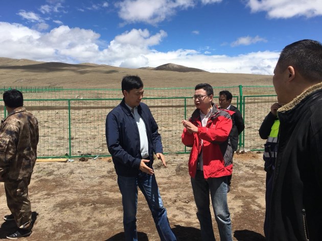 公司自成立以来始终将“绿色生态、高效节约、环境友好”的理念积极融入到项目开发工作中,打造了一批生态环保、技术领先的光伏发电项目。乡城正斗乡20MW光伏电站扶贫项目采用先进的T0水平单轴跟踪技术,有利于草场保护和退化草场的恢复,使光伏发电与新农村建设、生态环境建设、农牧业发展、提高农牧民经济收益相结合。邓超一行参观了乡城县正斗乡20MW光伏扶贫项目施工现场后,对公司的施工工艺和技术水平表示了肯定和赞扬,并期望公司能够持续创新,打造新能源行业标杆。