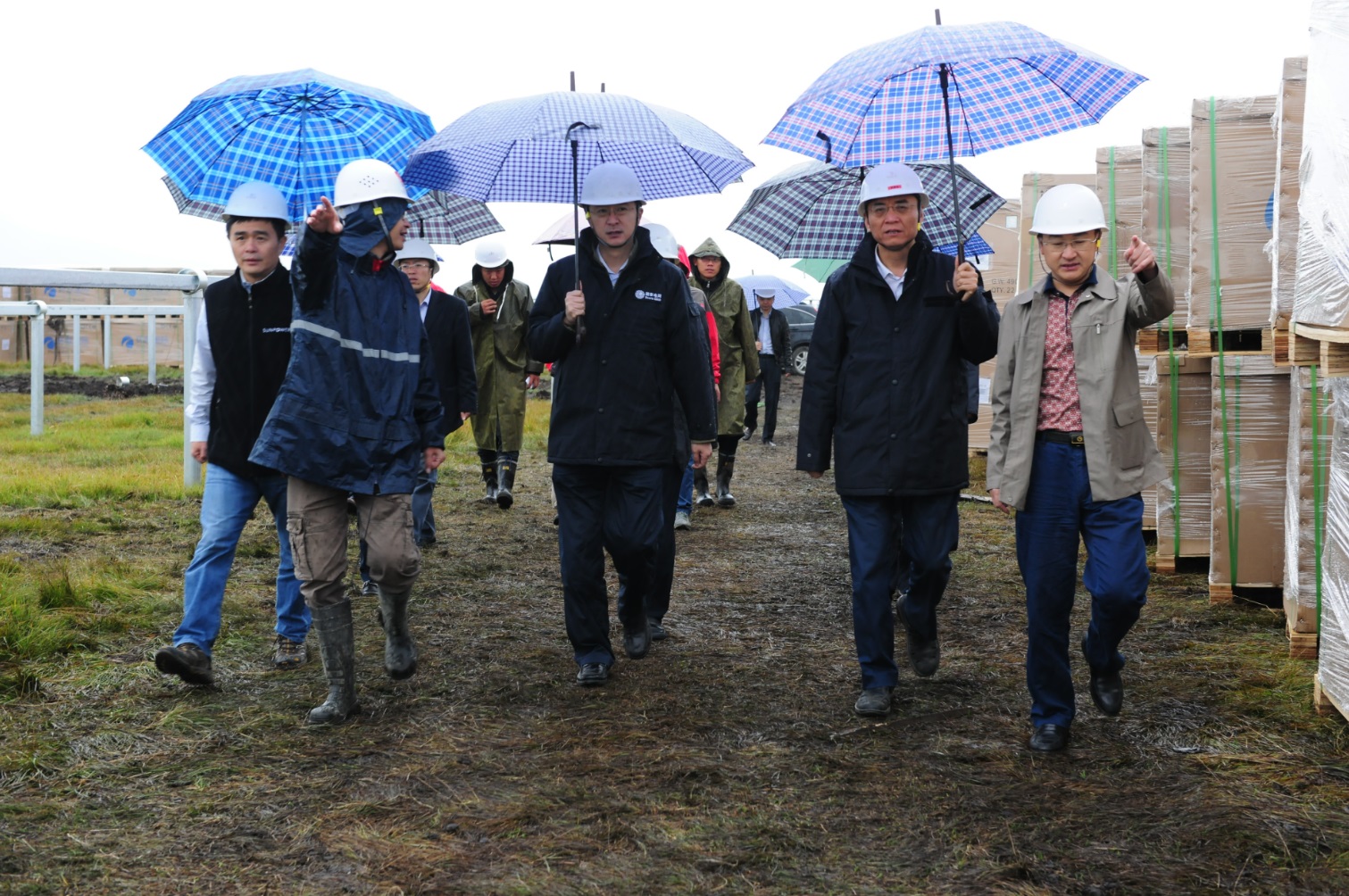 2015年8月14日上午,国家电网公司运行检修部张薛鸿副主任在四川省电力公司副总经理刘勇的陪同下来到红原邛溪光伏电站场址实地考察调研。国网阿坝供电公司总经理罗亮等陪同调研,晟天新能源发展有限公司总经理李树成、副总经理魏东介绍公司及项目相关情况。