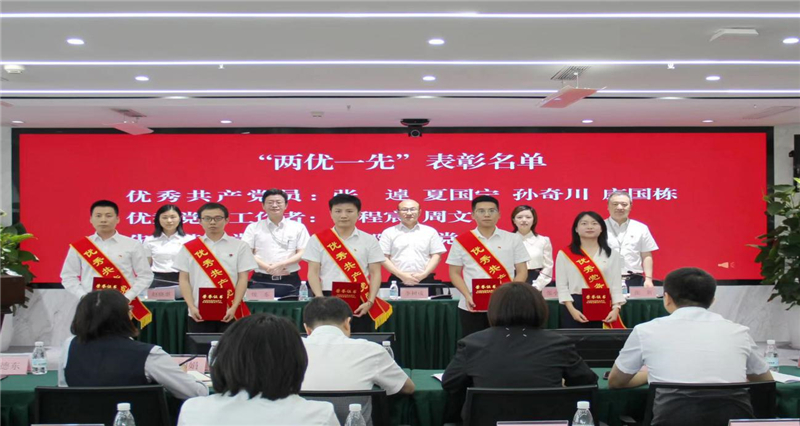会议在庄严的国歌声中拉开帷幕。党委委员、副总经理张新宣读了晟天新能源“两优一先”表彰决定,公司领导为获奖的集体和个人颁奖。本部第三党支部书记李明珂代表先进集体、电力工程公司康国栋代表先进个人交流发言。