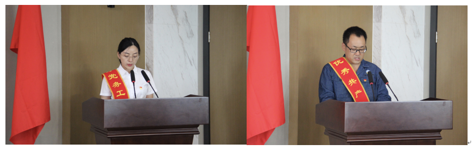 卓坤光伏电站师贤华作为优秀个人代表、第三党支部书记李明珂作为先进集体代表发言,回顾了工作成果、分享了工作感悟,一致表示要珍惜荣誉、立足本职、开拓进取,勇于迎接新挑战,拼搏奋进新征程,为助推公司高质量发展再立新功。