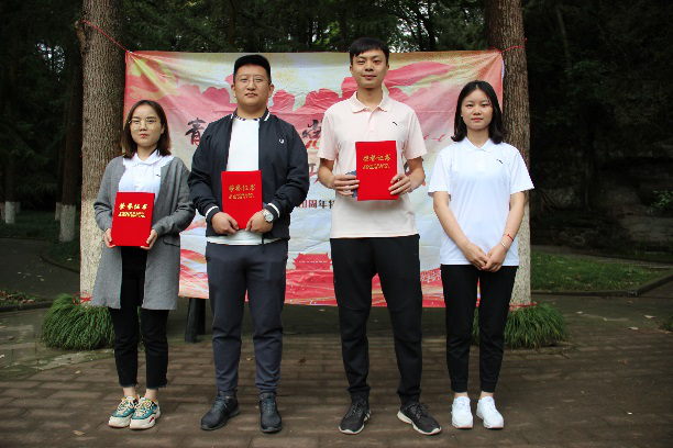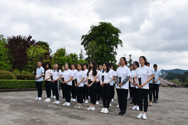 依山而建的书剑广场里,陈毅元帅的塑像雄踞广场中央。全体团员青年肃立于陈毅广场,奏唱中国人民共和国国歌。歌毕,青年团员手持献花,环绕陈毅元帅塑像一周,依次敬献鲜花,并面向陈毅元帅塑像庄重地三鞠躬,表达对陈毅元帅的深深敬仰和怀念之情。随后,大家右手握拳,面向团旗重温入团誓词:“我志愿加入中国共产主义青年团,坚决拥护中国共产党的领导,遵守团的章程……”。誓词响起,再次唤醒了团员青年的使命感和责任感,坚定了共产主义理想信念。